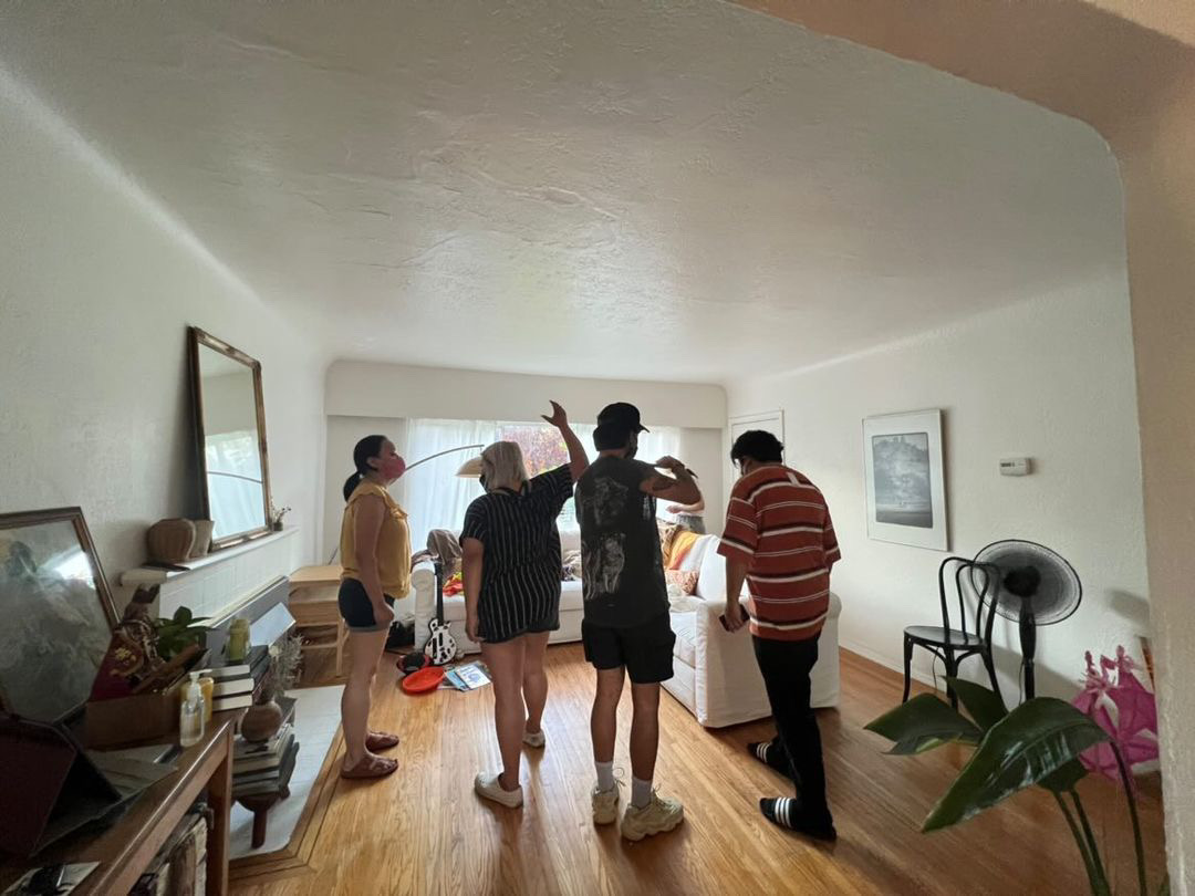 And a shot of us in the house where we filmed. Oh and it was HOT this weekend! We survived without AC.