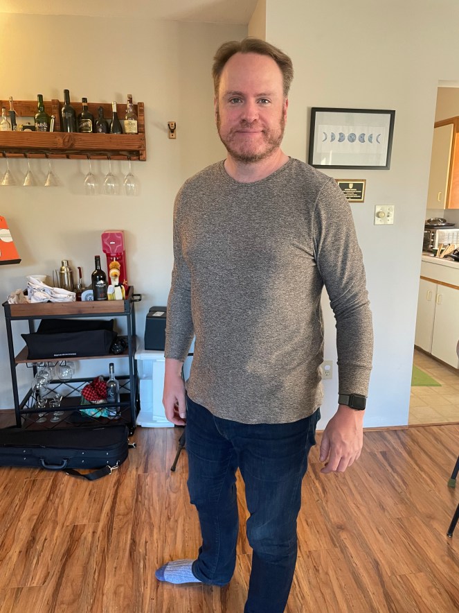 I made my hubs a couple of sweaters for his birthday! Both fabrics are from Fabricland – a really nice soft knit material. Very light, perfect for sweaters. This first one is called the Straight Fit Ragland Top. It’s a unisex pattern, so I will try making myself one!