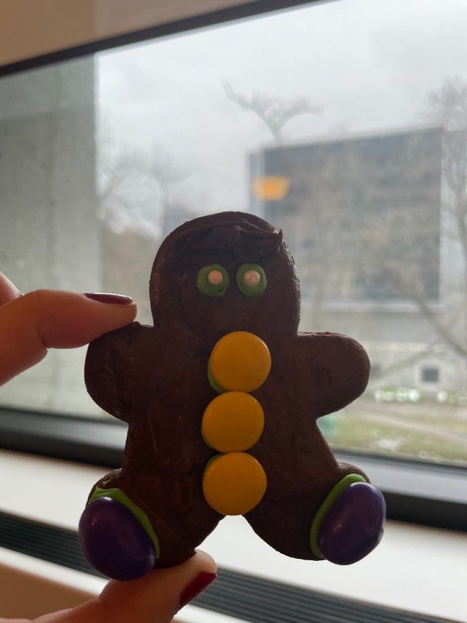 For treats! A faculty member brought in some gingerbread cookies.