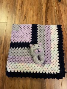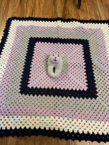 My dear friend Amy is expecting! I made her a stroller blanket and a cat rattle. I wasn’t able to attend her baby shower, but my hubs went and dropped of her present. She’s going to be the best mom!