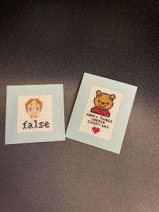 I’ve come back to cross stitch, after a bit of a break. I was really into it a few years ago, and I’m glad I’ve picked it up again. I’m making little presents for some of the people at Seussical. I like little projects like this because they don’t take up a ton of time, but it’s so meaningful to give a hand-crafted gift.