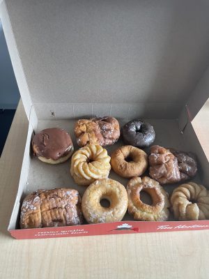 This past Wednesday was Administrative Professionals day – who knew? Not me, I was only made aware of it by someone else at work. I ran out to get my team of very professional administrative staff some donuts. We often have someone bring in a box of Tim bits, bit this called for FULL sized donuts. I love that a couple were snatched up before I got to take a picture!