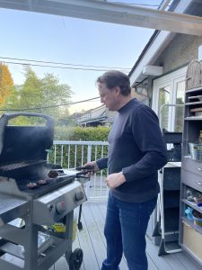 Last night we had dinner with our friend Stefan. We brought over this cookie pie for dessert. And my hubs was happy to cook on the barbecue, since we had to give ours up many years ago, when we moved into our apartment. Nothing beats dinner on the barbecue!